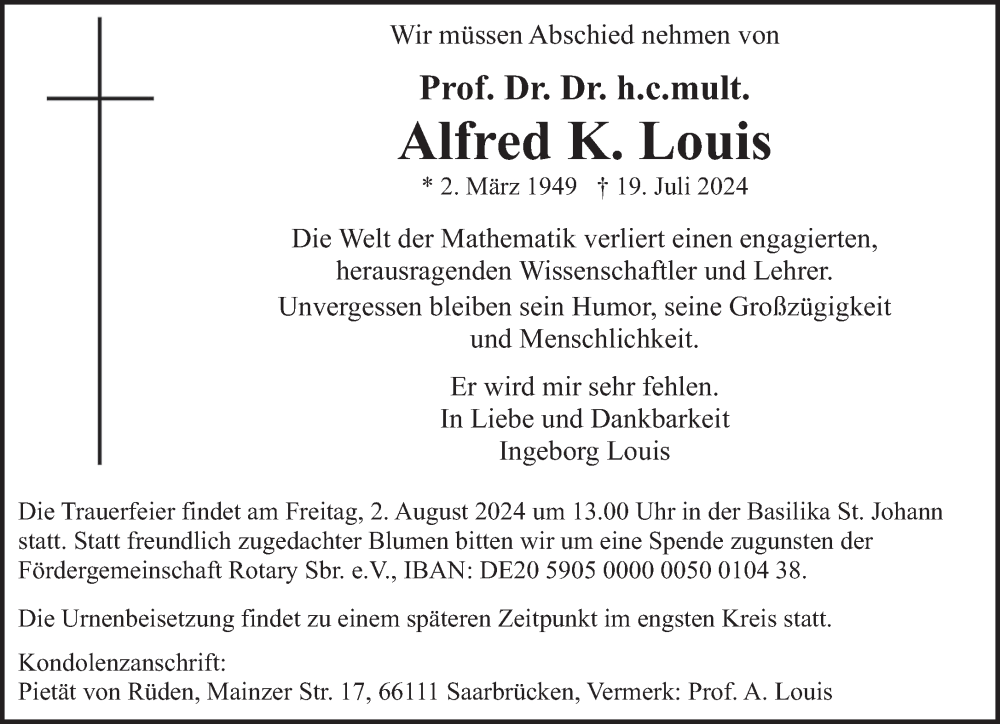 Hier finden Sie alle Traueranzeigen aus der Zeitung, die bisher für Alfred Louis erschienen sind. Weitere Traueranzeigen, die in der Zeitung erscheinen, werden hier ebenfalls aufgelistet
