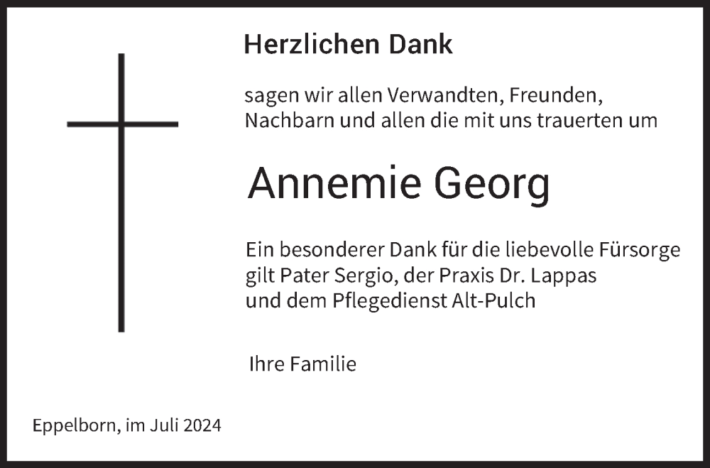 Hier finden Sie alle Traueranzeigen aus der Zeitung, die bisher für Annemie Georg erschienen sind. Weitere Traueranzeigen, die in der Zeitung erscheinen, werden hier ebenfalls aufgelistet