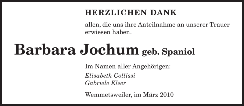 Hier finden Sie alle Traueranzeigen aus der Zeitung, die bisher für Barbara Jochum erschienen sind. Weitere Traueranzeigen, die in der Zeitung erscheinen, werden hier ebenfalls aufgelistet