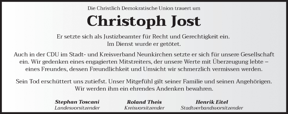 Hier finden Sie alle Traueranzeigen aus der Zeitung, die bisher für Christoph Jost erschienen sind. Weitere Traueranzeigen, die in der Zeitung erscheinen, werden hier ebenfalls aufgelistet