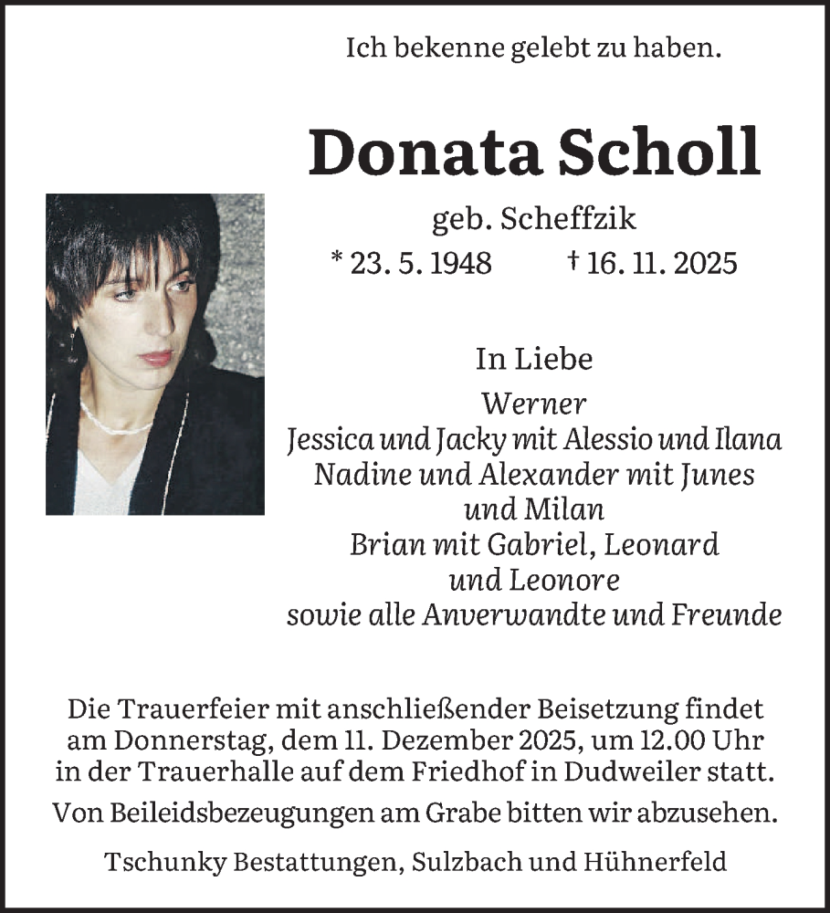 Hier finden Sie alle Traueranzeigen aus der Zeitung, die bisher für Donata Scholl erschienen sind. Weitere Traueranzeigen, die in der Zeitung erscheinen, werden hier ebenfalls aufgelistet
