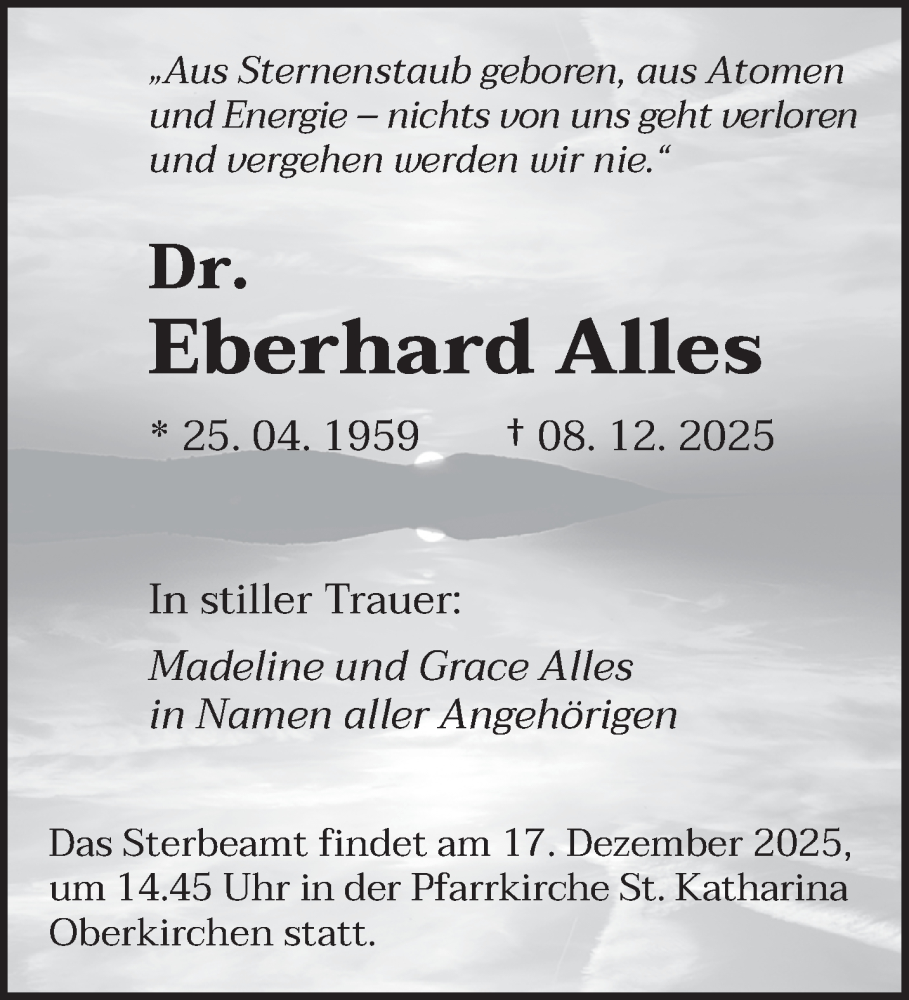 Hier finden Sie alle Traueranzeigen aus der Zeitung, die bisher für Eberhard Alles erschienen sind. Weitere Traueranzeigen, die in der Zeitung erscheinen, werden hier ebenfalls aufgelistet