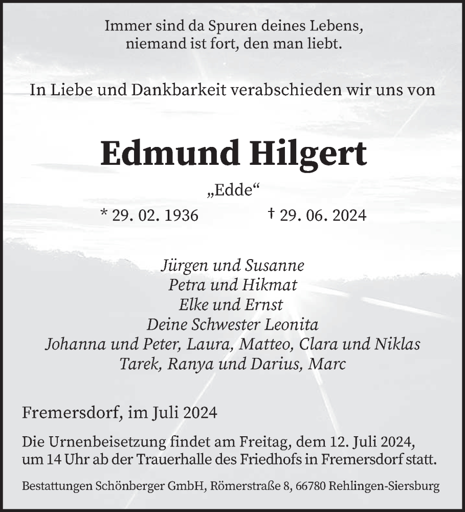 Hier finden Sie alle Traueranzeigen aus der Zeitung, die bisher für Edmund Hagert erschienen sind. Weitere Traueranzeigen, die in der Zeitung erscheinen, werden hier ebenfalls aufgelistet