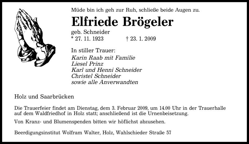 Hier finden Sie alle Traueranzeigen aus der Zeitung, die bisher für Elfriede Brögeler erschienen sind. Weitere Traueranzeigen, die in der Zeitung erscheinen, werden hier ebenfalls aufgelistet