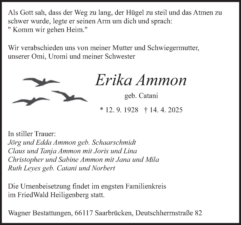 Hier finden Sie alle Traueranzeigen aus der Zeitung, die bisher für Erika Ammon erschienen sind. Weitere Traueranzeigen, die in der Zeitung erscheinen, werden hier ebenfalls aufgelistet