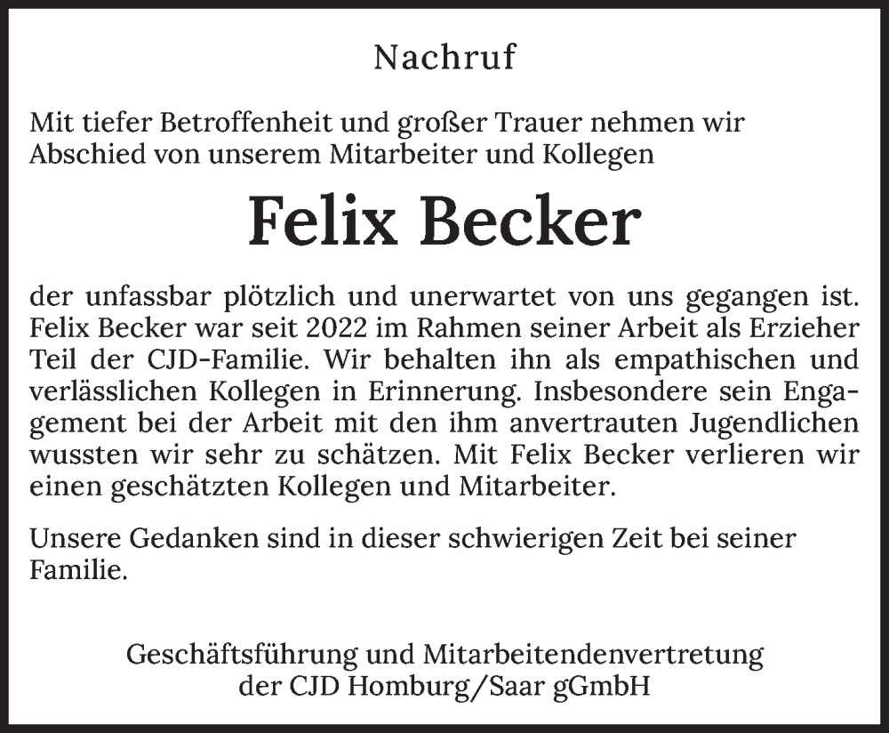 Hier finden Sie alle Traueranzeigen aus der Zeitung, die bisher für Felix Becker erschienen sind. Weitere Traueranzeigen, die in der Zeitung erscheinen, werden hier ebenfalls aufgelistet