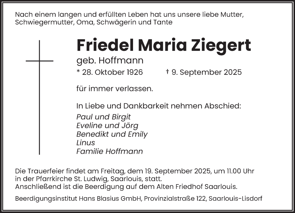Hier finden Sie alle Traueranzeigen aus der Zeitung, die bisher für Friedel Maria Ziegert erschienen sind. Weitere Traueranzeigen, die in der Zeitung erscheinen, werden hier ebenfalls aufgelistet