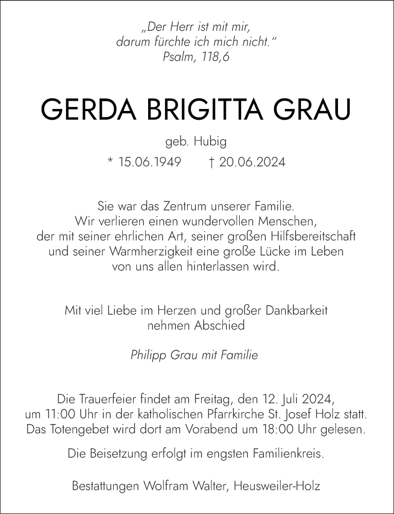 Hier finden Sie alle Traueranzeigen aus der Zeitung, die bisher für Gerda Brigitta Grau erschienen sind. Weitere Traueranzeigen, die in der Zeitung erscheinen, werden hier ebenfalls aufgelistet