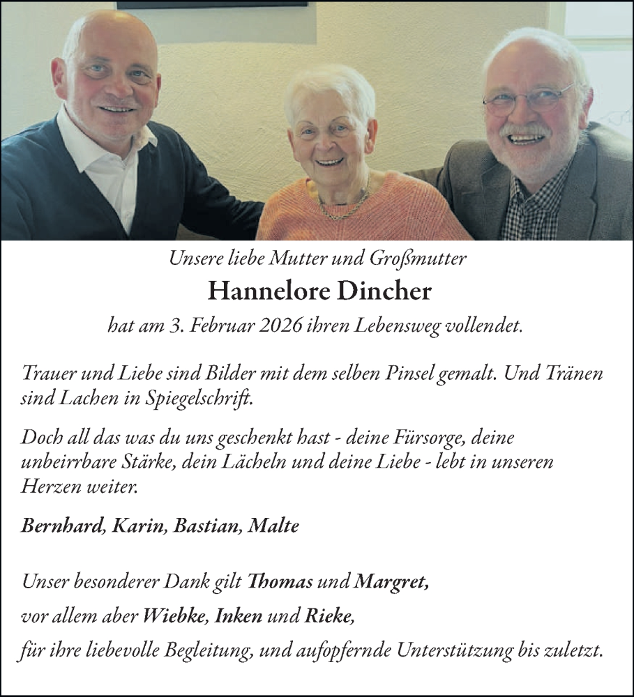 Hier finden Sie alle Traueranzeigen aus der Zeitung, die bisher für Hannelore Dincher erschienen sind. Weitere Traueranzeigen, die in der Zeitung erscheinen, werden hier ebenfalls aufgelistet