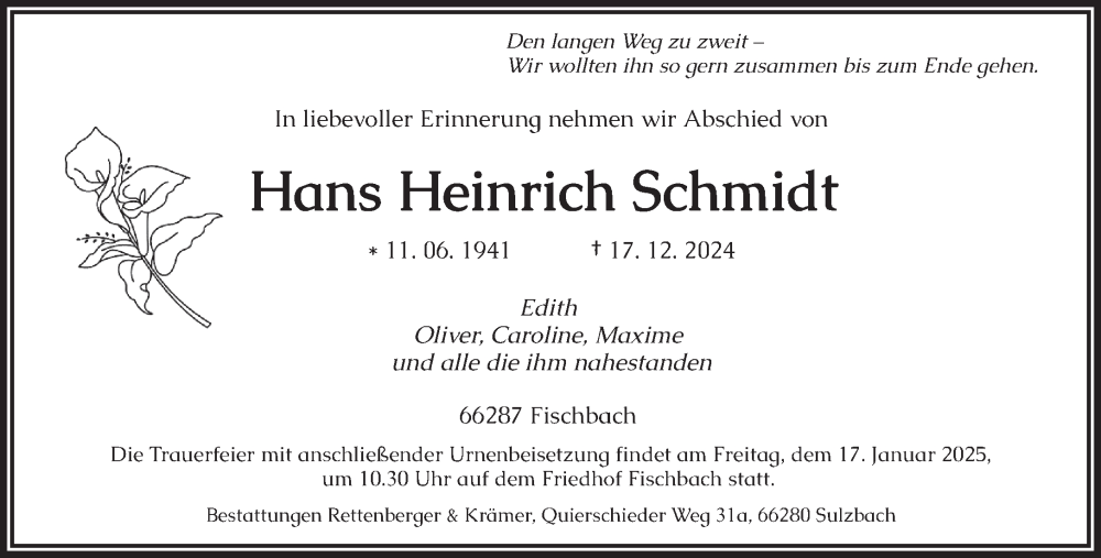 Hier finden Sie alle Traueranzeigen aus der Zeitung, die bisher für Hans Heinrich Schmidt erschienen sind. Weitere Traueranzeigen, die in der Zeitung erscheinen, werden hier ebenfalls aufgelistet