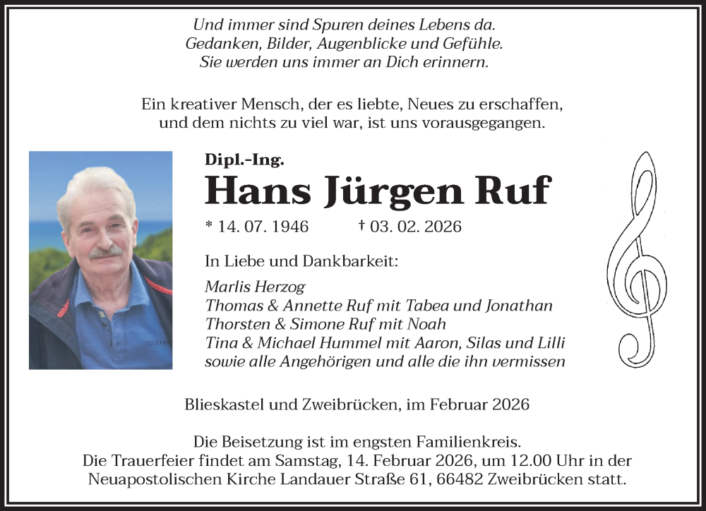 Hier finden Sie alle Traueranzeigen aus der Zeitung, die bisher für Hans Jürgen Ruf erschienen sind. Weitere Traueranzeigen, die in der Zeitung erscheinen, werden hier ebenfalls aufgelistet