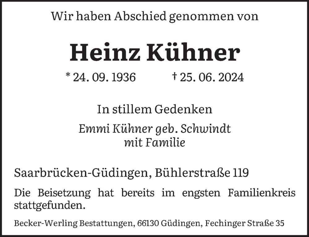 Hier finden Sie alle Traueranzeigen aus der Zeitung, die bisher für Heinz Kühner erschienen sind. Weitere Traueranzeigen, die in der Zeitung erscheinen, werden hier ebenfalls aufgelistet