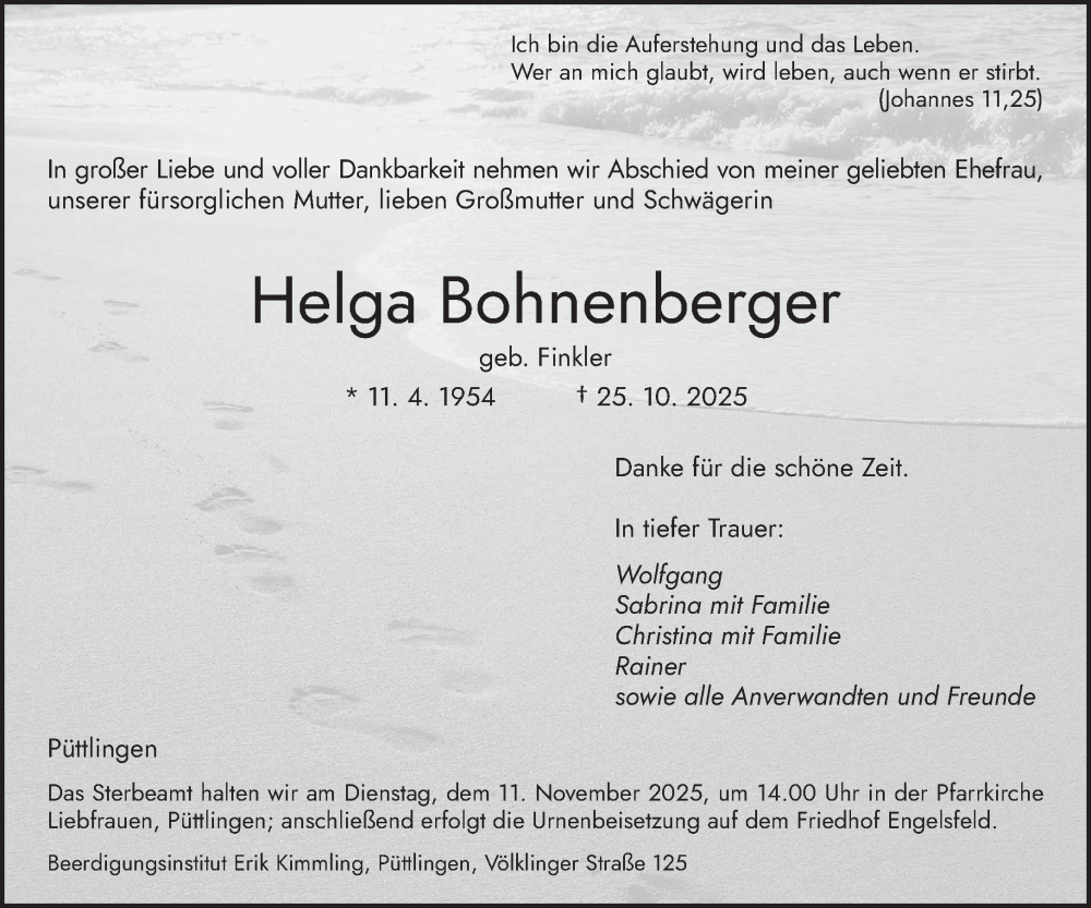 Hier finden Sie alle Traueranzeigen aus der Zeitung, die bisher für Helga Bohnenberger erschienen sind. Weitere Traueranzeigen, die in der Zeitung erscheinen, werden hier ebenfalls aufgelistet