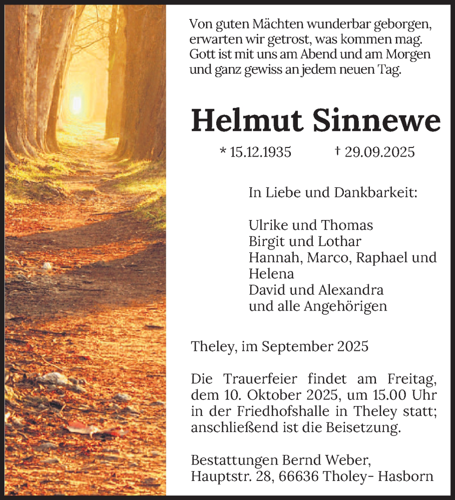 Hier finden Sie alle Traueranzeigen aus der Zeitung, die bisher für Helmut Sinnewe erschienen sind. Weitere Traueranzeigen, die in der Zeitung erscheinen, werden hier ebenfalls aufgelistet