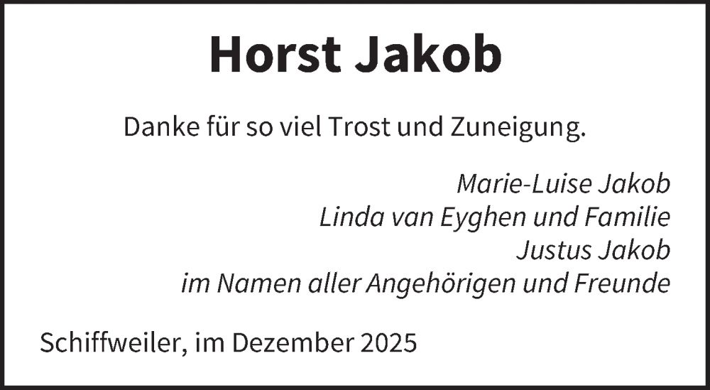 Hier finden Sie alle Traueranzeigen aus der Zeitung, die bisher für Horst Jakob erschienen sind. Weitere Traueranzeigen, die in der Zeitung erscheinen, werden hier ebenfalls aufgelistet
