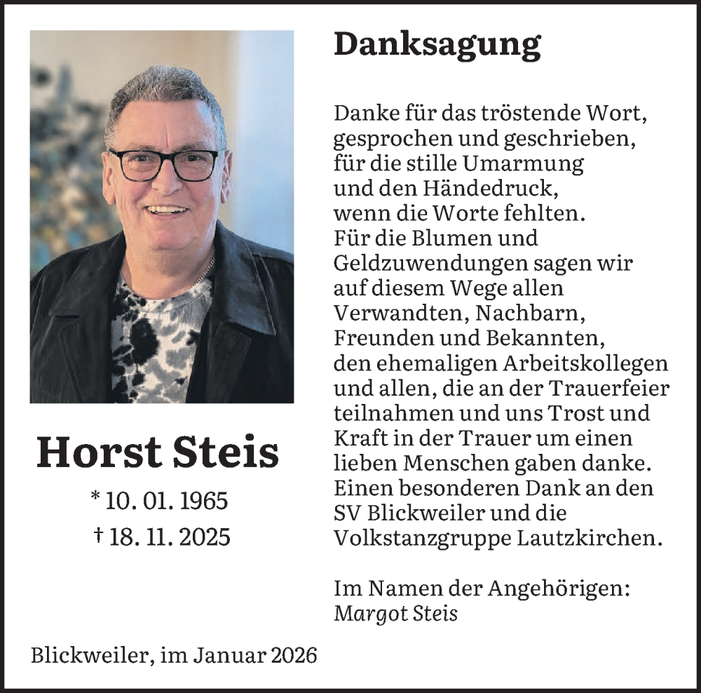 Hier finden Sie alle Traueranzeigen aus der Zeitung, die bisher für Horst Steis erschienen sind. Weitere Traueranzeigen, die in der Zeitung erscheinen, werden hier ebenfalls aufgelistet