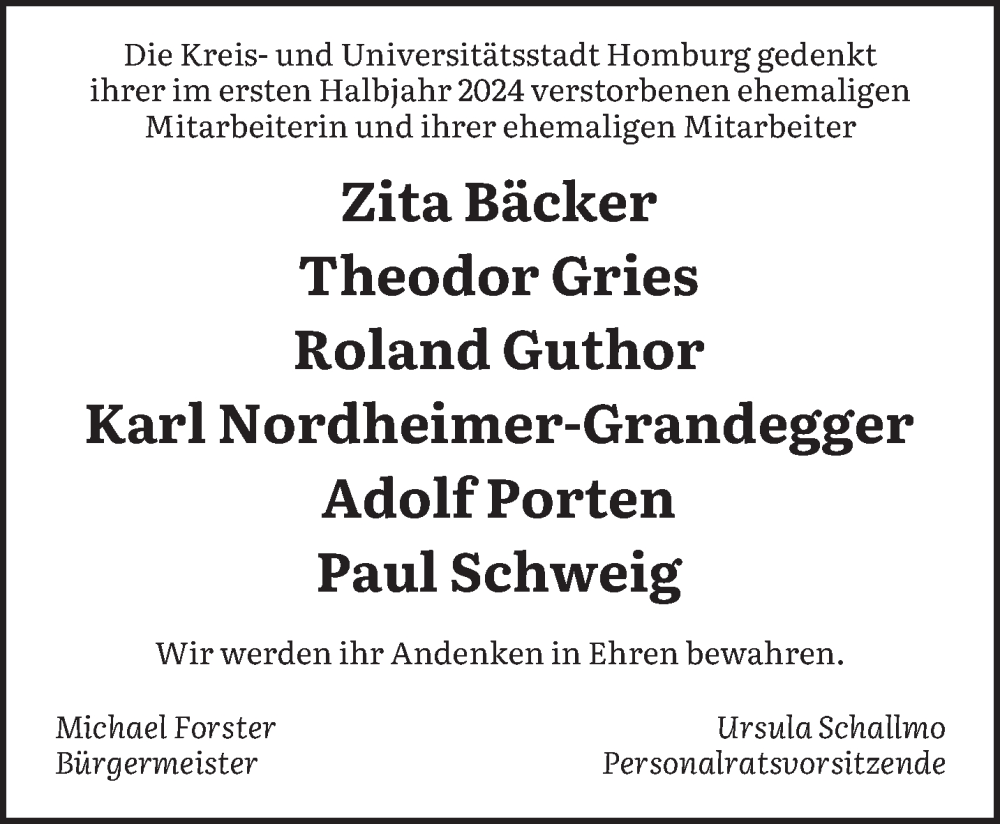 Hier finden Sie alle Traueranzeigen aus der Zeitung, die bisher für In Gedenken Stadt Homburg erschienen sind. Weitere Traueranzeigen, die in der Zeitung erscheinen, werden hier ebenfalls aufgelistet