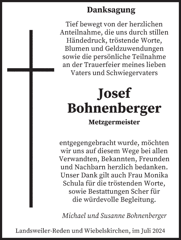 Hier finden Sie alle Traueranzeigen aus der Zeitung, die bisher für Josef Bohnenberger erschienen sind. Weitere Traueranzeigen, die in der Zeitung erscheinen, werden hier ebenfalls aufgelistet