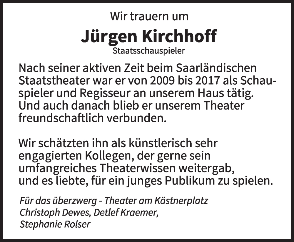 Hier finden Sie alle Traueranzeigen aus der Zeitung, die bisher für Jürgen Kirchhoff erschienen sind. Weitere Traueranzeigen, die in der Zeitung erscheinen, werden hier ebenfalls aufgelistet