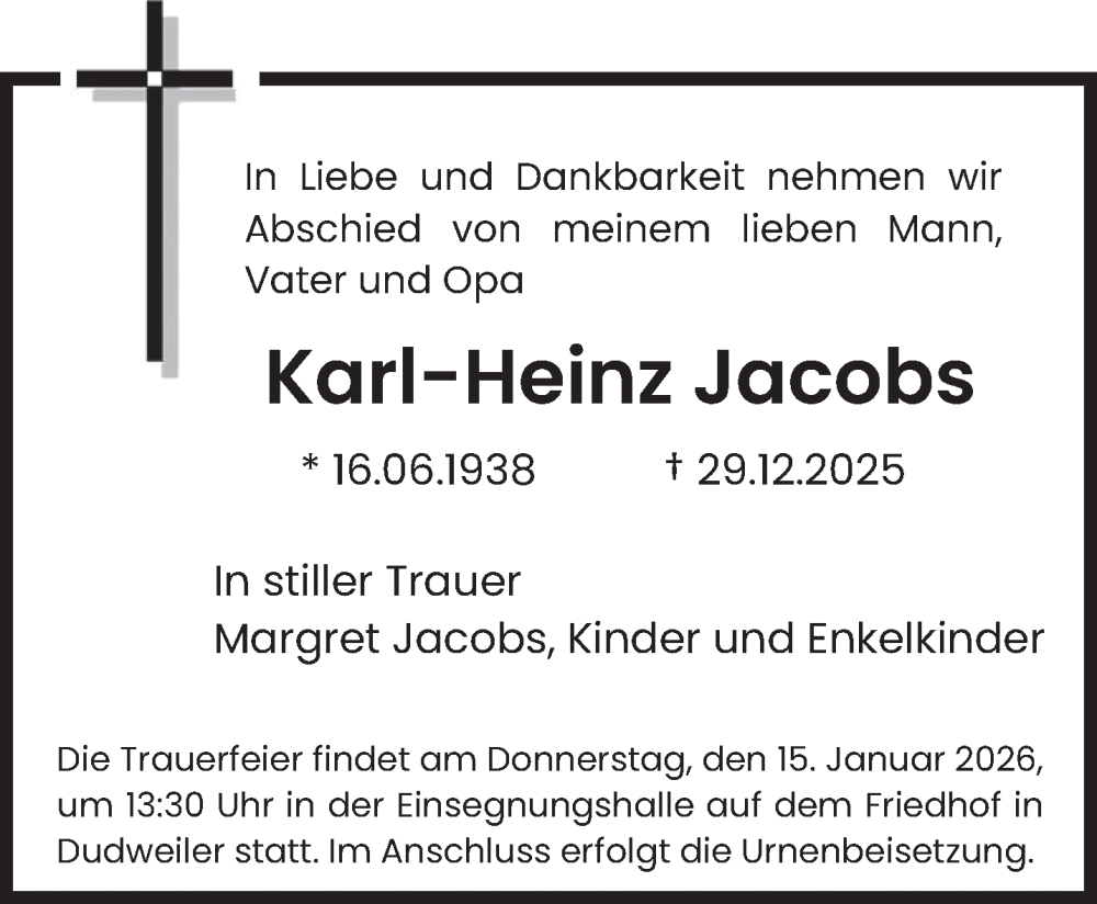 Hier finden Sie alle Traueranzeigen aus der Zeitung, die bisher für Karl-Heinz Jacobs erschienen sind. Weitere Traueranzeigen, die in der Zeitung erscheinen, werden hier ebenfalls aufgelistet