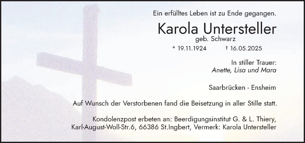 Hier finden Sie alle Traueranzeigen aus der Zeitung, die bisher für Karola Untersteller erschienen sind. Weitere Traueranzeigen, die in der Zeitung erscheinen, werden hier ebenfalls aufgelistet