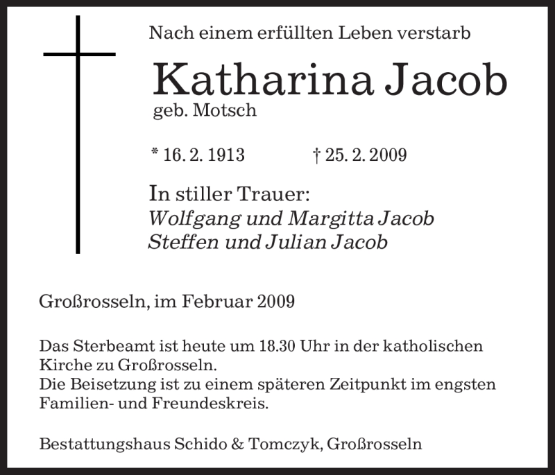 Hier finden Sie alle Traueranzeigen aus der Zeitung, die bisher für Katharina Jacob erschienen sind. Weitere Traueranzeigen, die in der Zeitung erscheinen, werden hier ebenfalls aufgelistet