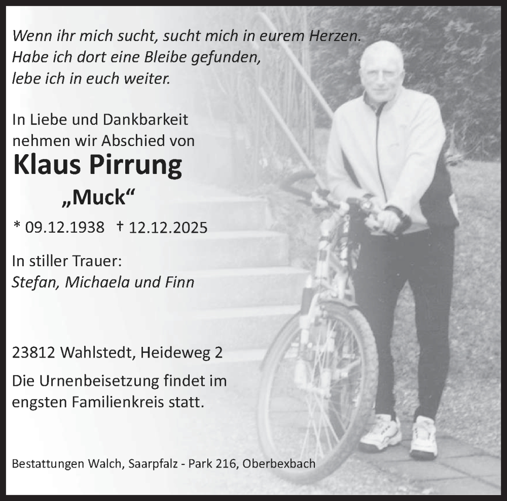 Hier finden Sie alle Traueranzeigen aus der Zeitung, die bisher für Klaus Pirrung erschienen sind. Weitere Traueranzeigen, die in der Zeitung erscheinen, werden hier ebenfalls aufgelistet