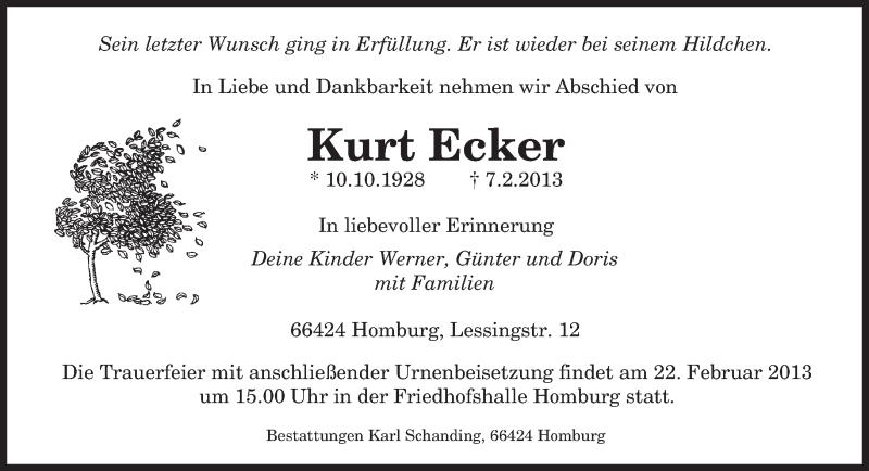 Hier finden Sie alle Traueranzeigen aus der Zeitung, die bisher für Kurt Ecker erschienen sind. Weitere Traueranzeigen, die in der Zeitung erscheinen, werden hier ebenfalls aufgelistet