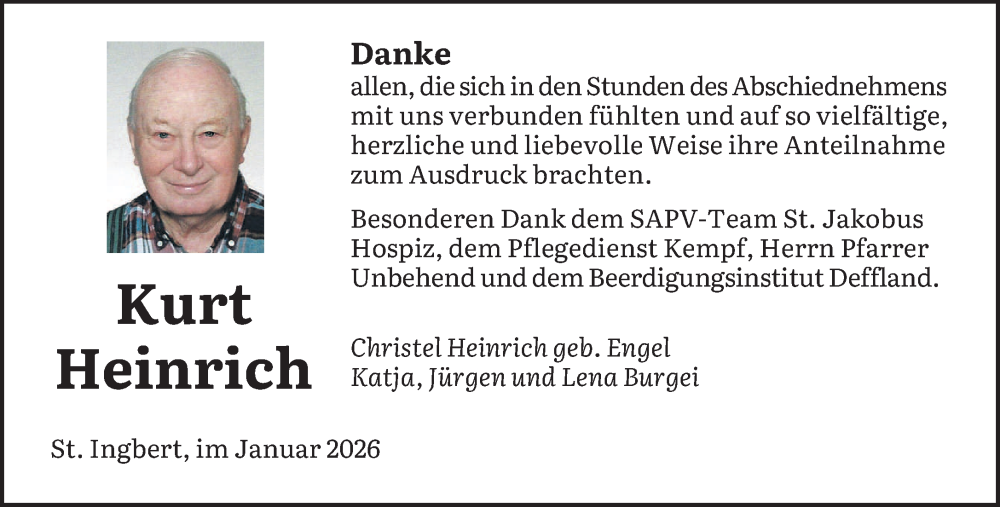 Hier finden Sie alle Traueranzeigen aus der Zeitung, die bisher für Kurt Heinrich erschienen sind. Weitere Traueranzeigen, die in der Zeitung erscheinen, werden hier ebenfalls aufgelistet