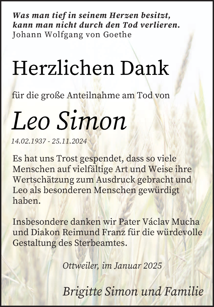 Hier finden Sie alle Traueranzeigen aus der Zeitung, die bisher für Leo Simon erschienen sind. Weitere Traueranzeigen, die in der Zeitung erscheinen, werden hier ebenfalls aufgelistet