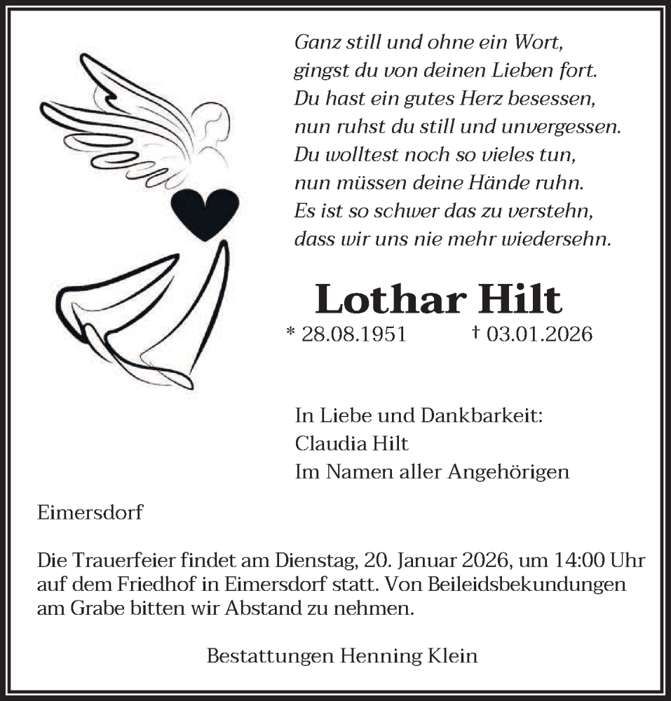 Hier finden Sie alle Traueranzeigen aus der Zeitung, die bisher für Lothar Hilt erschienen sind. Weitere Traueranzeigen, die in der Zeitung erscheinen, werden hier ebenfalls aufgelistet