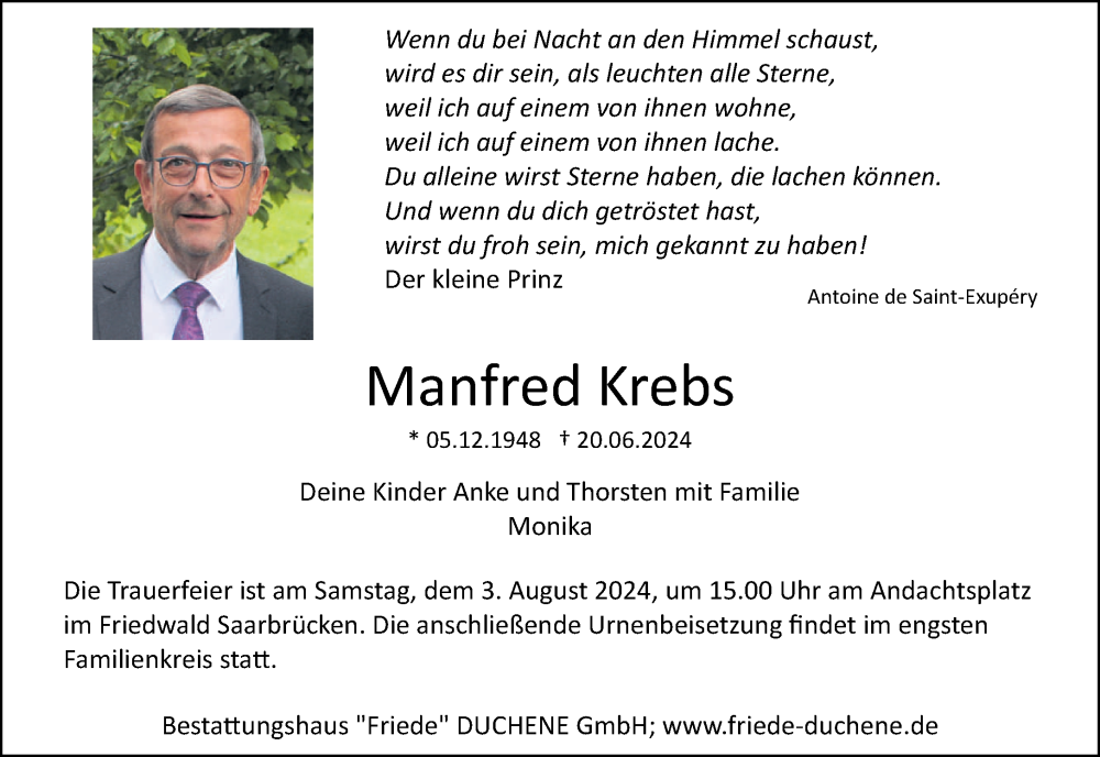 Hier finden Sie alle Traueranzeigen aus der Zeitung, die bisher für Manfred Krebs erschienen sind. Weitere Traueranzeigen, die in der Zeitung erscheinen, werden hier ebenfalls aufgelistet