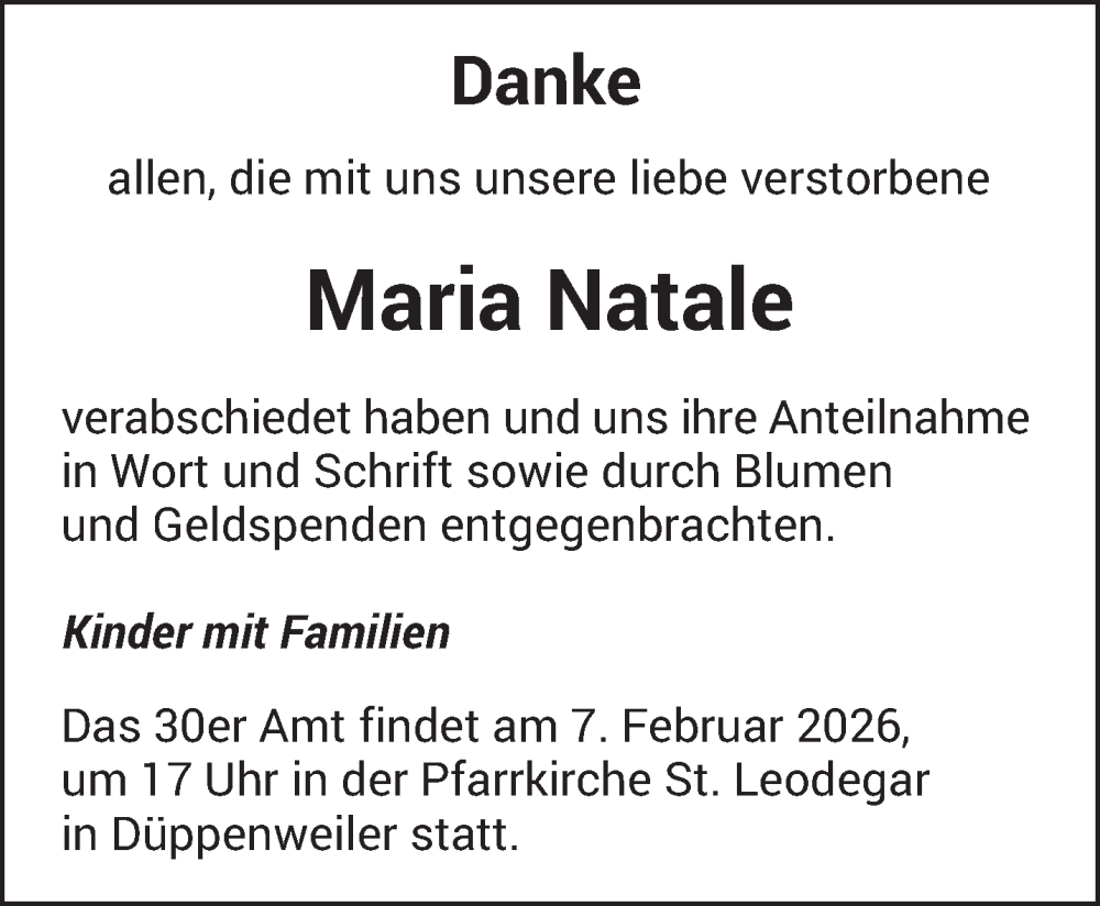 Hier finden Sie alle Traueranzeigen aus der Zeitung, die bisher für Maria Natale erschienen sind. Weitere Traueranzeigen, die in der Zeitung erscheinen, werden hier ebenfalls aufgelistet