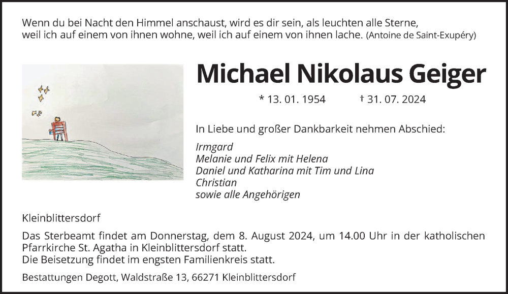 Hier finden Sie alle Traueranzeigen aus der Zeitung, die bisher für Michael Nikolaus Geiger erschienen sind. Weitere Traueranzeigen, die in der Zeitung erscheinen, werden hier ebenfalls aufgelistet