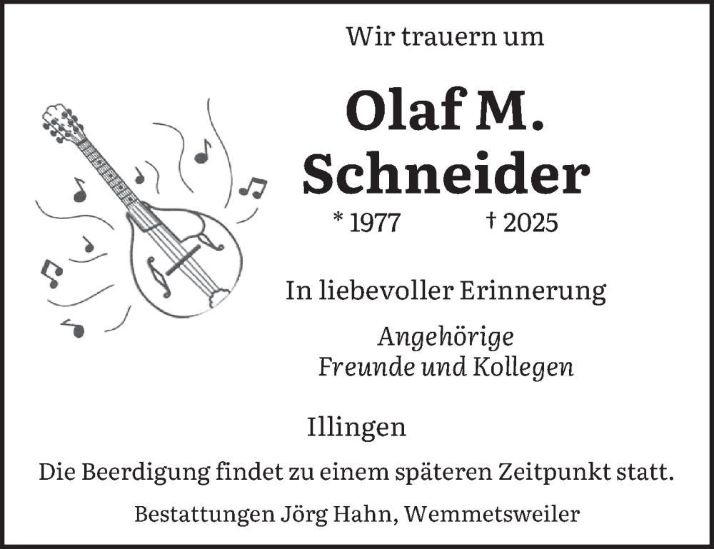Hier finden Sie alle Traueranzeigen aus der Zeitung, die bisher für Olaf M. Schneider erschienen sind. Weitere Traueranzeigen, die in der Zeitung erscheinen, werden hier ebenfalls aufgelistet