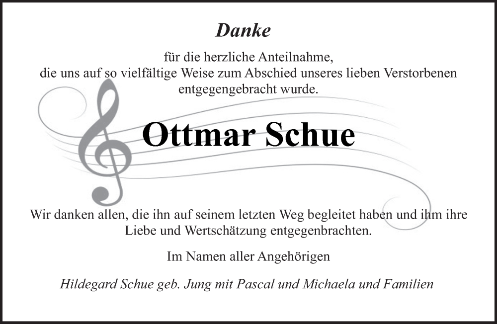 Hier finden Sie alle Traueranzeigen aus der Zeitung, die bisher für Ottmar Schue erschienen sind. Weitere Traueranzeigen, die in der Zeitung erscheinen, werden hier ebenfalls aufgelistet