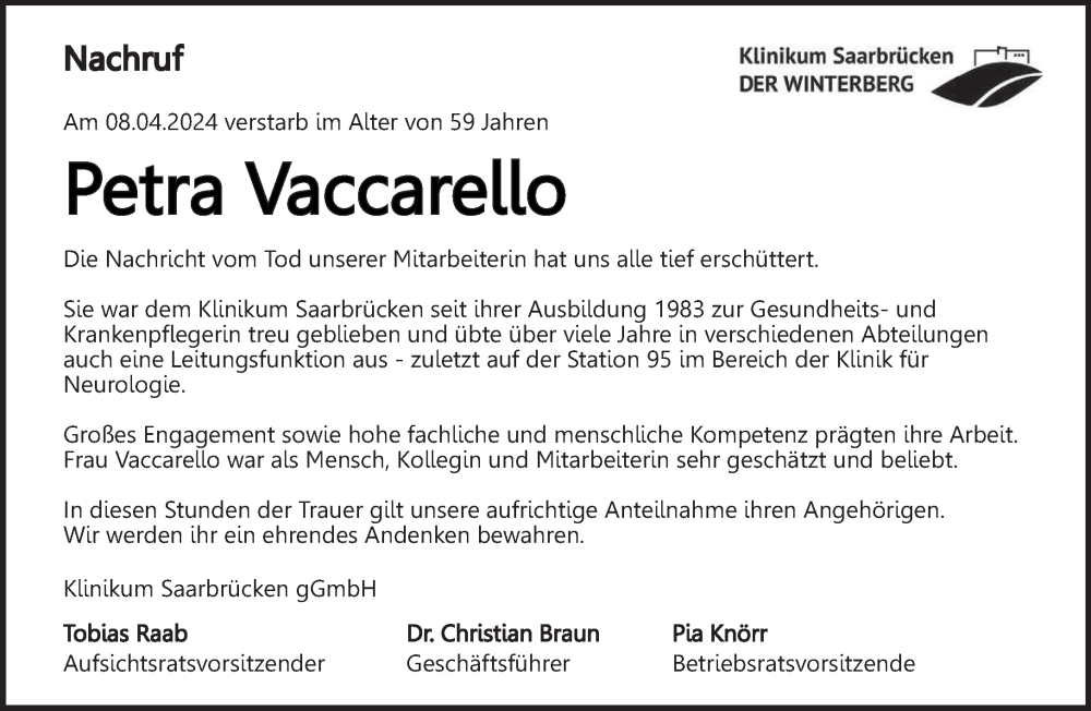 Hier finden Sie alle Traueranzeigen aus der Zeitung, die bisher für Petra Vaccarello erschienen sind. Weitere Traueranzeigen, die in der Zeitung erscheinen, werden hier ebenfalls aufgelistet