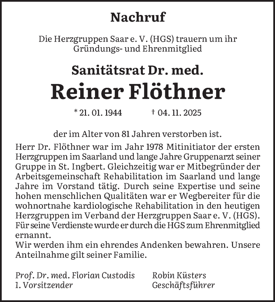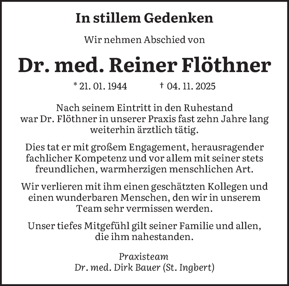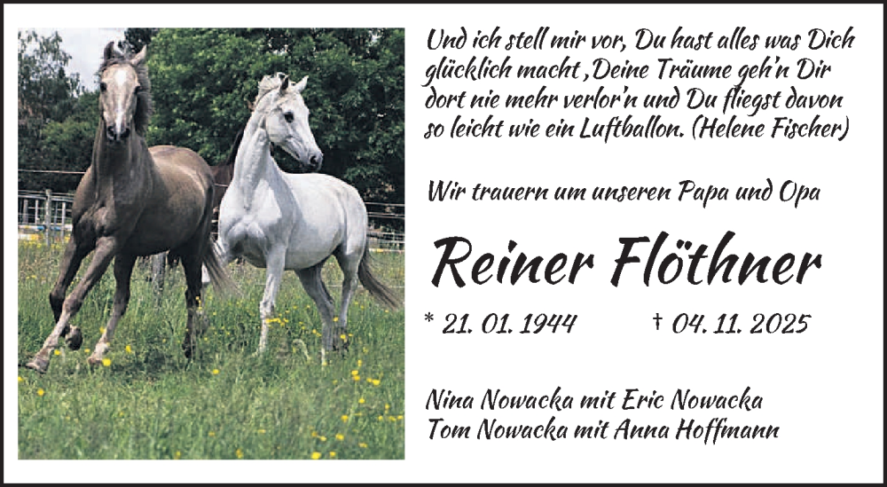 Hier finden Sie alle Traueranzeigen aus der Zeitung, die bisher für Reiner Flöthner erschienen sind. Weitere Traueranzeigen, die in der Zeitung erscheinen, werden hier ebenfalls aufgelistet
