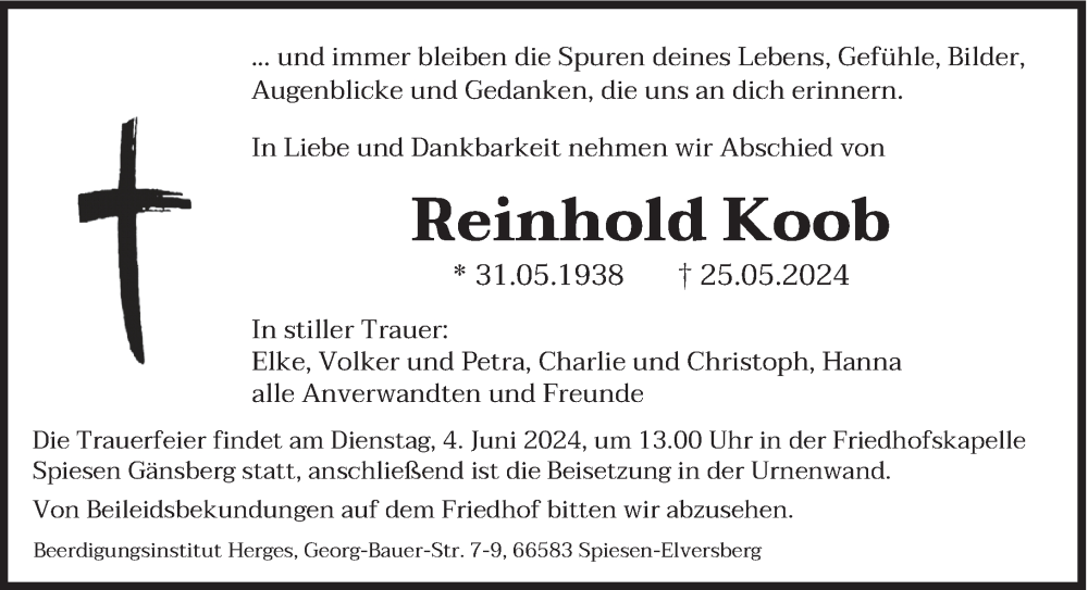 Hier finden Sie alle Traueranzeigen aus der Zeitung, die bisher für Reinhold Koob erschienen sind. Weitere Traueranzeigen, die in der Zeitung erscheinen, werden hier ebenfalls aufgelistet