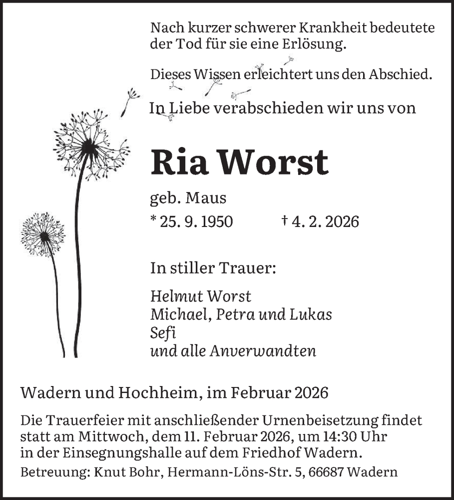 Hier finden Sie alle Traueranzeigen aus der Zeitung, die bisher für Ria Worst erschienen sind. Weitere Traueranzeigen, die in der Zeitung erscheinen, werden hier ebenfalls aufgelistet