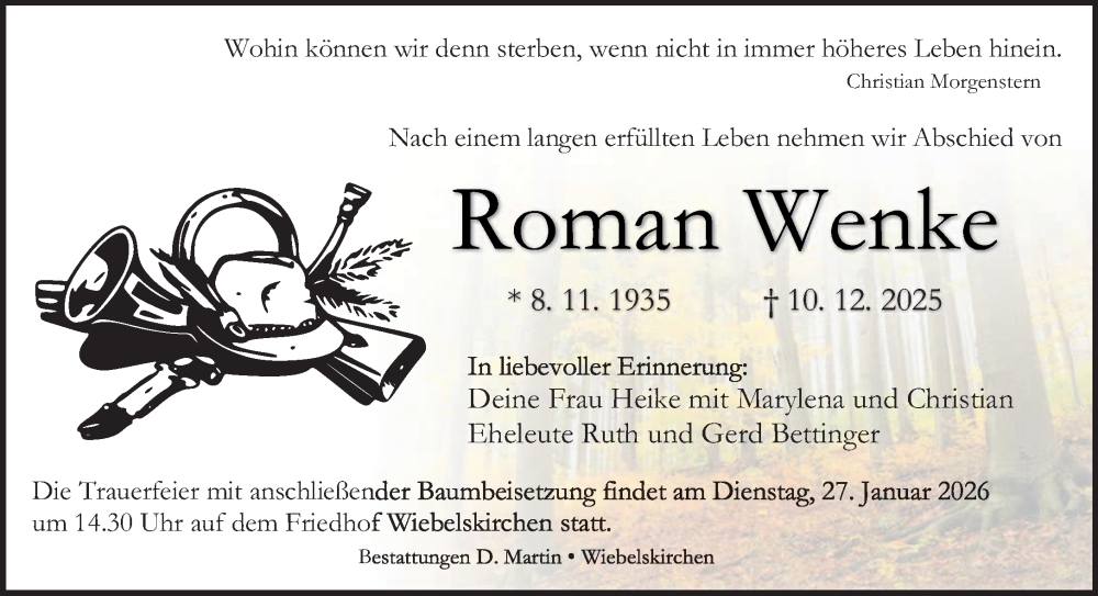 Hier finden Sie alle Traueranzeigen aus der Zeitung, die bisher für Roman Wenke erschienen sind. Weitere Traueranzeigen, die in der Zeitung erscheinen, werden hier ebenfalls aufgelistet