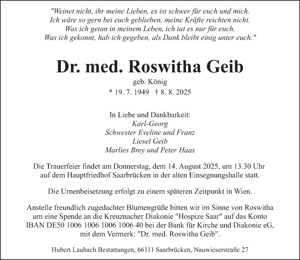 Hier finden Sie alle Traueranzeigen aus der Zeitung, die bisher für Roswitha Geib erschienen sind. Weitere Traueranzeigen, die in der Zeitung erscheinen, werden hier ebenfalls aufgelistet