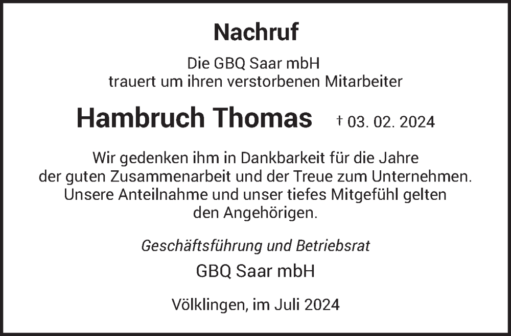 Hier finden Sie alle Traueranzeigen aus der Zeitung, die bisher für Thomas Hambruch erschienen sind. Weitere Traueranzeigen, die in der Zeitung erscheinen, werden hier ebenfalls aufgelistet