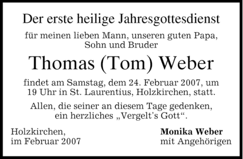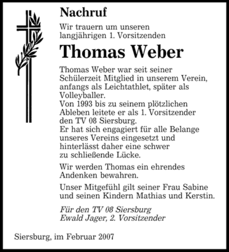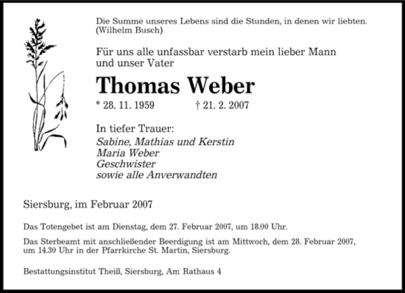 Hier finden Sie alle Traueranzeigen aus der Zeitung, die bisher für Thomas Weber erschienen sind. Weitere Traueranzeigen, die in der Zeitung erscheinen, werden hier ebenfalls aufgelistet