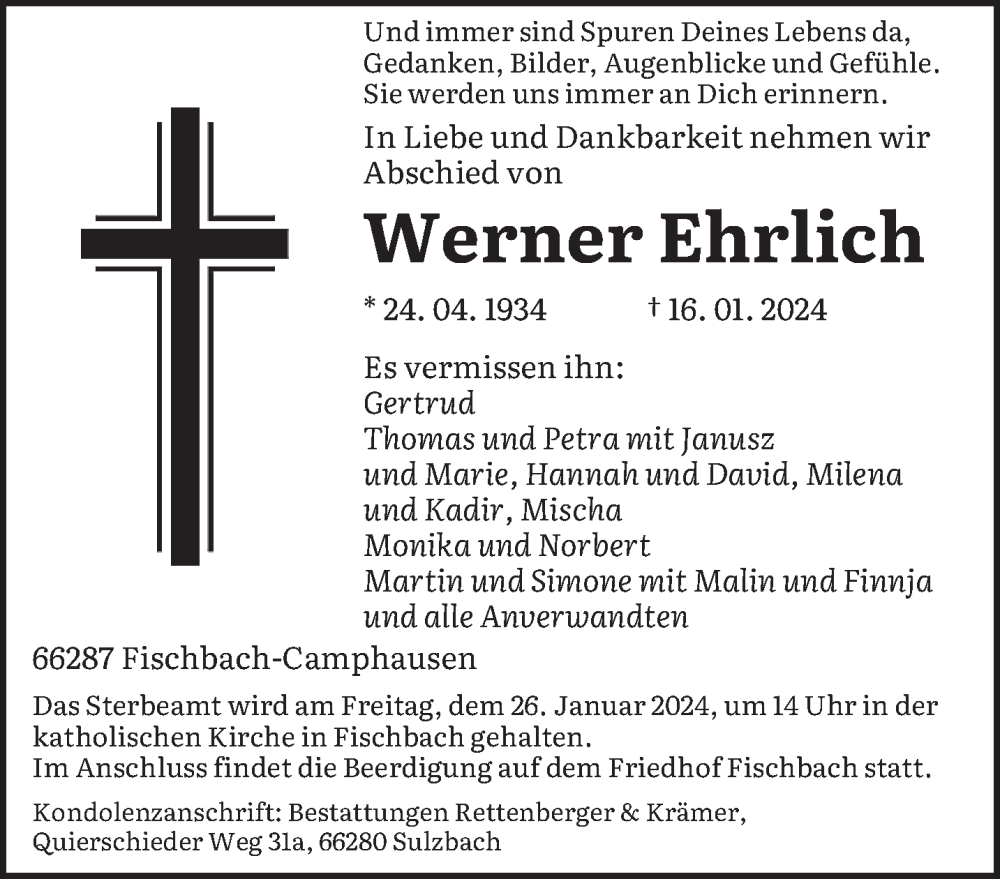 Hier finden Sie alle Traueranzeigen aus der Zeitung, die bisher für Werner Ehrlich erschienen sind. Weitere Traueranzeigen, die in der Zeitung erscheinen, werden hier ebenfalls aufgelistet
