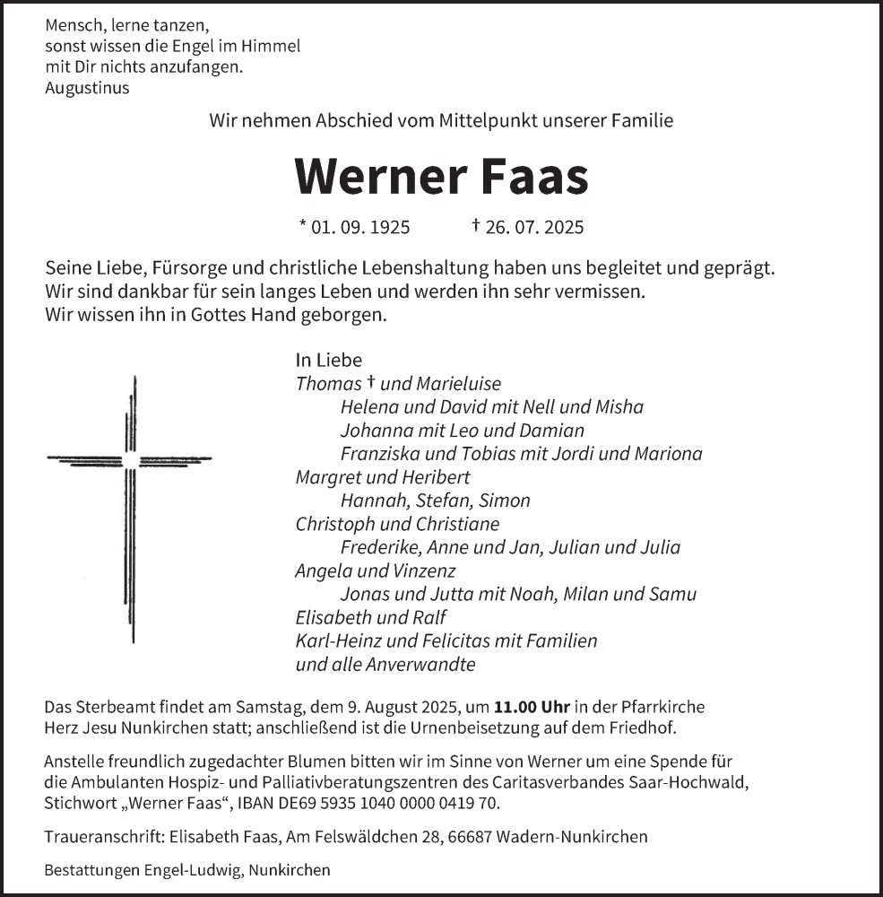Hier finden Sie alle Traueranzeigen aus der Zeitung, die bisher für Werner Faas erschienen sind. Weitere Traueranzeigen, die in der Zeitung erscheinen, werden hier ebenfalls aufgelistet
