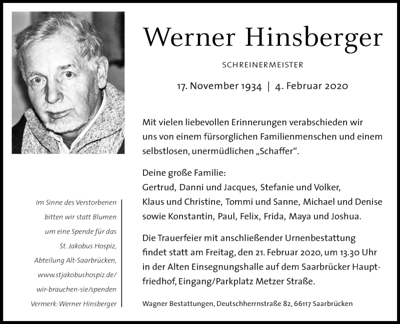 Hier finden Sie alle Traueranzeigen aus der Zeitung, die bisher für Werner Hinsberger erschienen sind. Weitere Traueranzeigen, die in der Zeitung erscheinen, werden hier ebenfalls aufgelistet