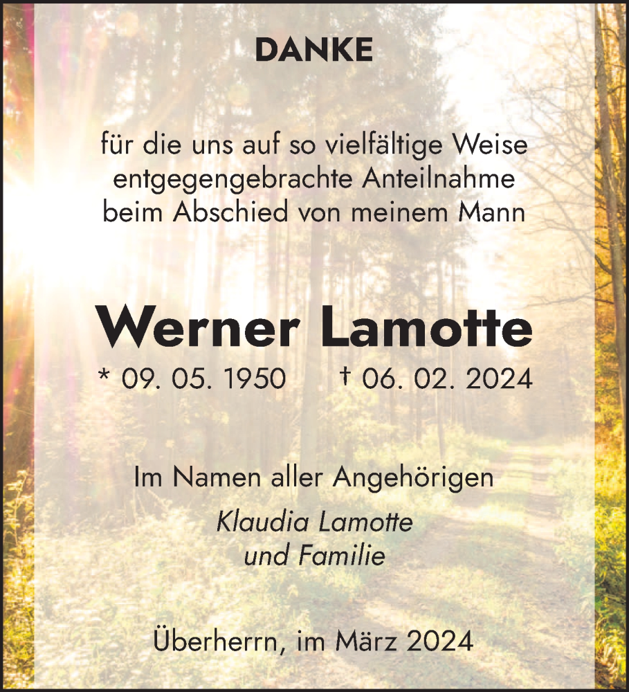 Hier finden Sie alle Traueranzeigen aus der Zeitung, die bisher für Werner Lamotte erschienen sind. Weitere Traueranzeigen, die in der Zeitung erscheinen, werden hier ebenfalls aufgelistet