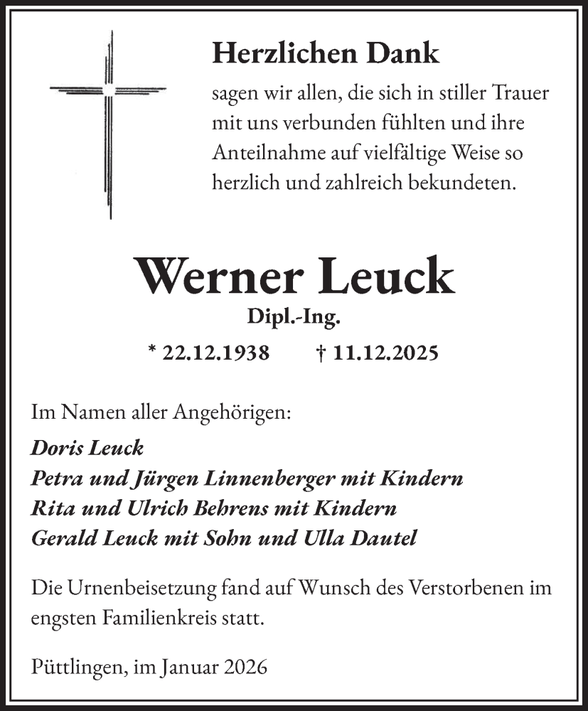 Hier finden Sie alle Traueranzeigen aus der Zeitung, die bisher für Werner Leuck erschienen sind. Weitere Traueranzeigen, die in der Zeitung erscheinen, werden hier ebenfalls aufgelistet