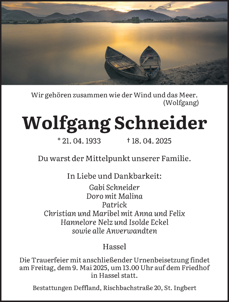 Hier finden Sie alle Traueranzeigen aus der Zeitung, die bisher für Wolfgang Schneider erschienen sind. Weitere Traueranzeigen, die in der Zeitung erscheinen, werden hier ebenfalls aufgelistet